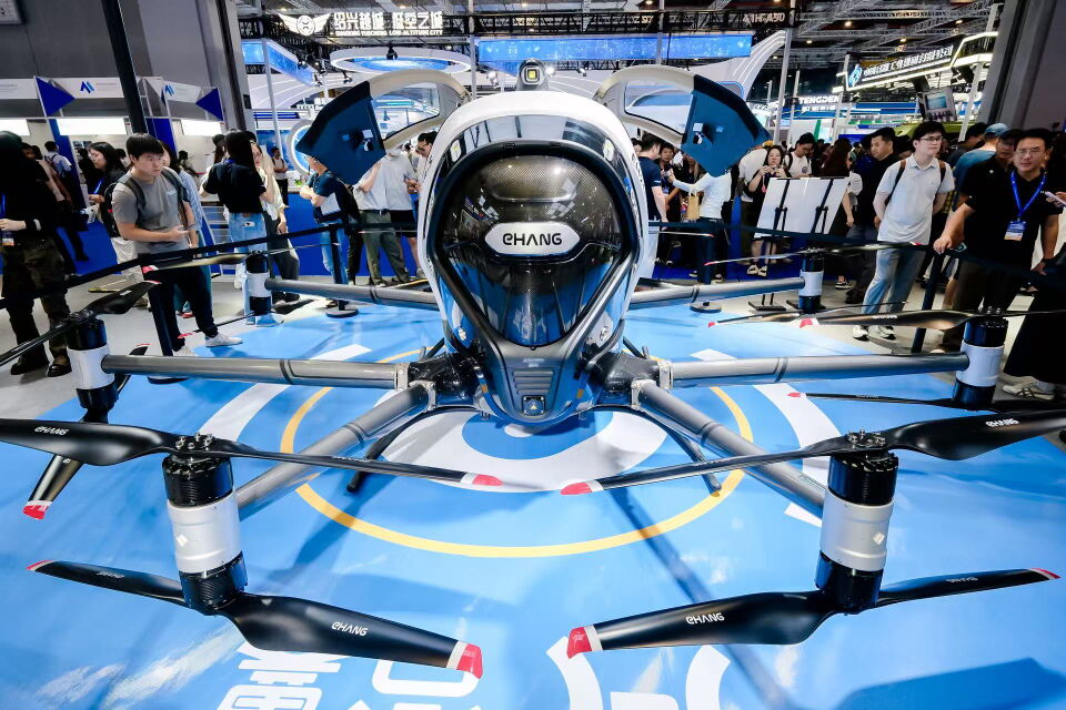7月23日,亿航智能在2025国际低空经济博览会上展出EH216-S无人驾驶载人航空器。新华社发