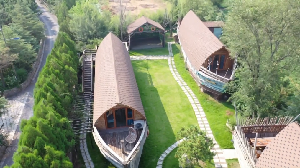 在日照山海天旅游度假区,有一个充满海洋元素的园区。50多艘木壳老渔船被搬上岸,改造成船坞民宿。渔具老物件与现代创意结合,让老船有了新生命。