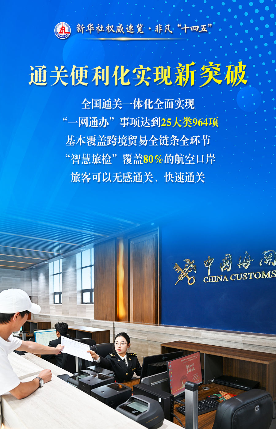 检出传染病70余种18万例、累计侦办走私犯罪案件2.3万起、“一网通办”事项达到了25大类964项……25日举行的“高质量完成‘十四五’规划”新闻发布会上,海关总署就守护国门安全、促进高质量发展成就进行了介绍。这组海报,带你了解。