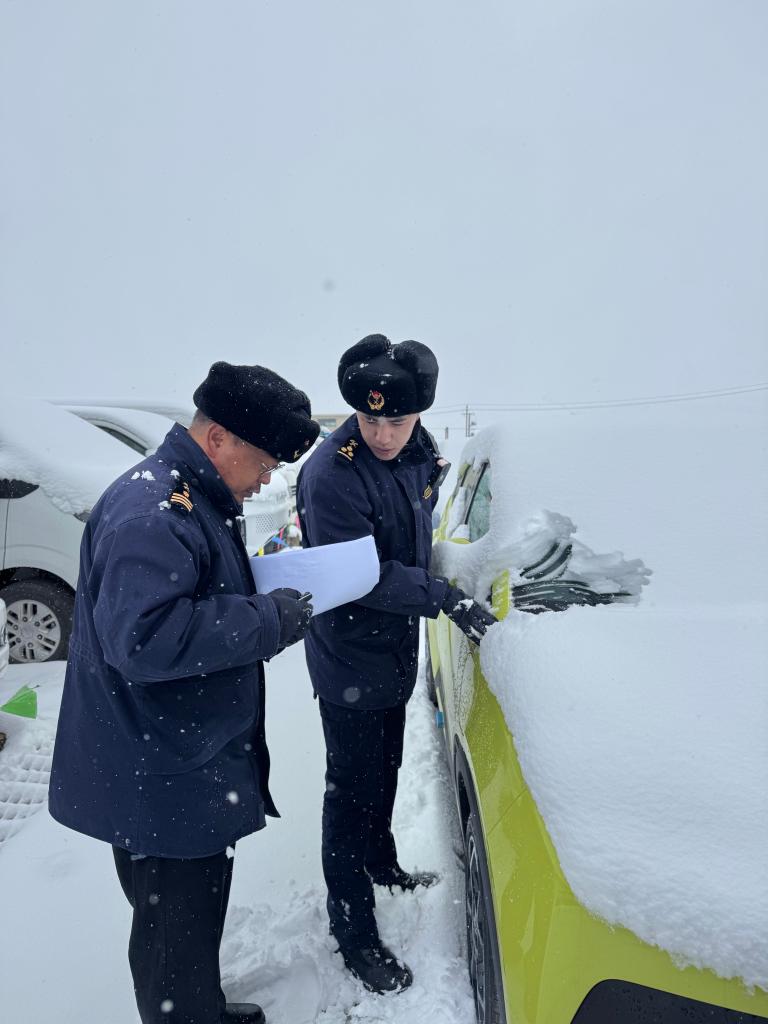 10月28日,日喀则海关关员在里孜口岸查验出口新能源汽车。(拉萨海关供图)