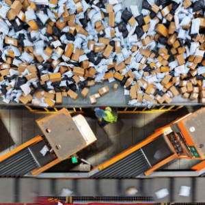 11月10日,在中国邮政集团有限公司江苏扬州邮件处理中心,工作人员在分拣快递包裹(无人机照片)。新华社发(孟德龙摄)