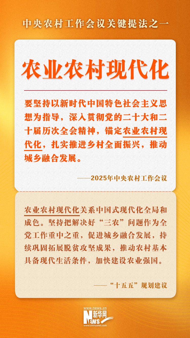 近日召开的中央农村工作会议分析了当前“三农”工作面临的形势和挑战,部署2026年“三农”工作。为更好帮助网友理解会议精神,新华网梳理了会议提出的部分关键提法,一起来学习。