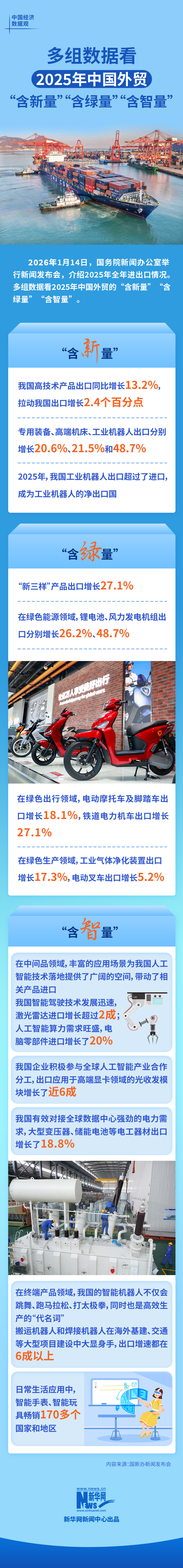 中国经济数据观丨多组数据看2025年中国外贸“含新量”“含绿量”“含智量”-新华网