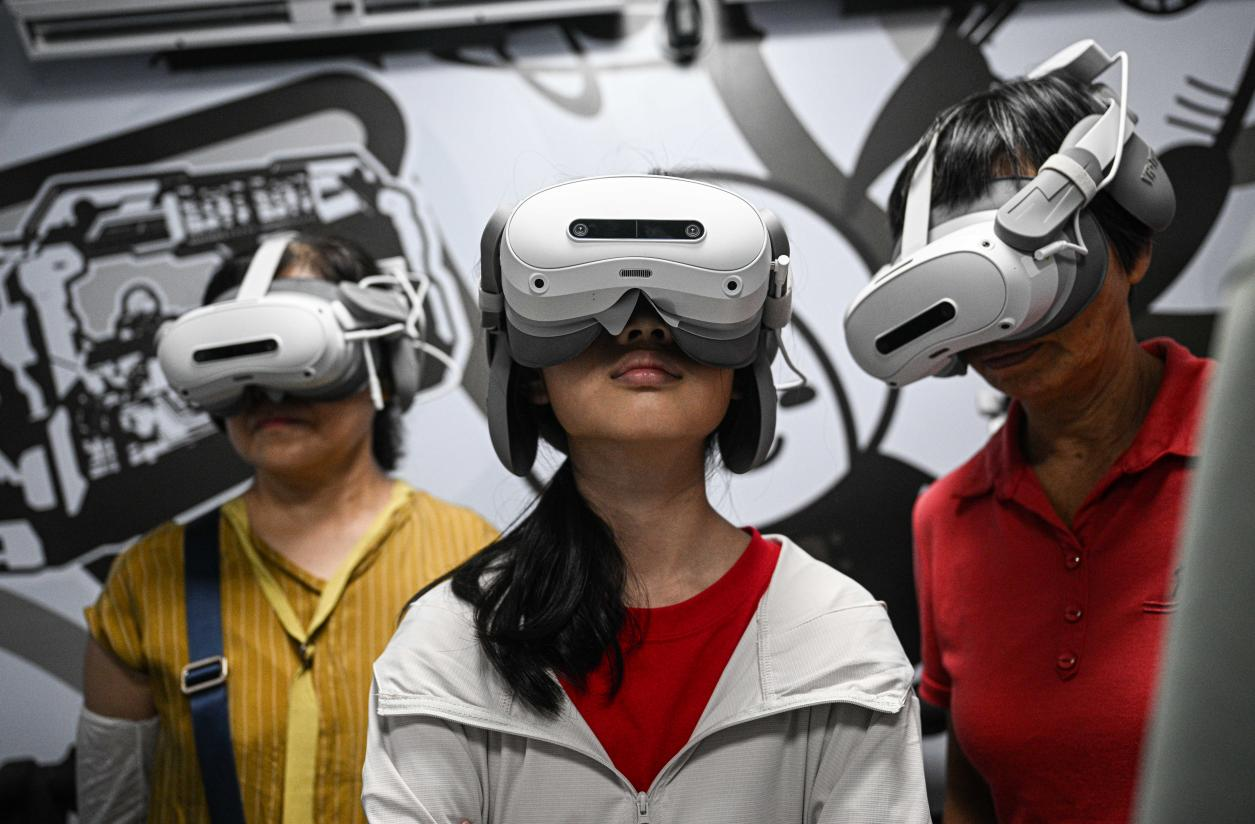 2025年10月7日,游客在文昌航天科普中心进行MR星际穿越体验。新华社记者 蒲晓旭 摄