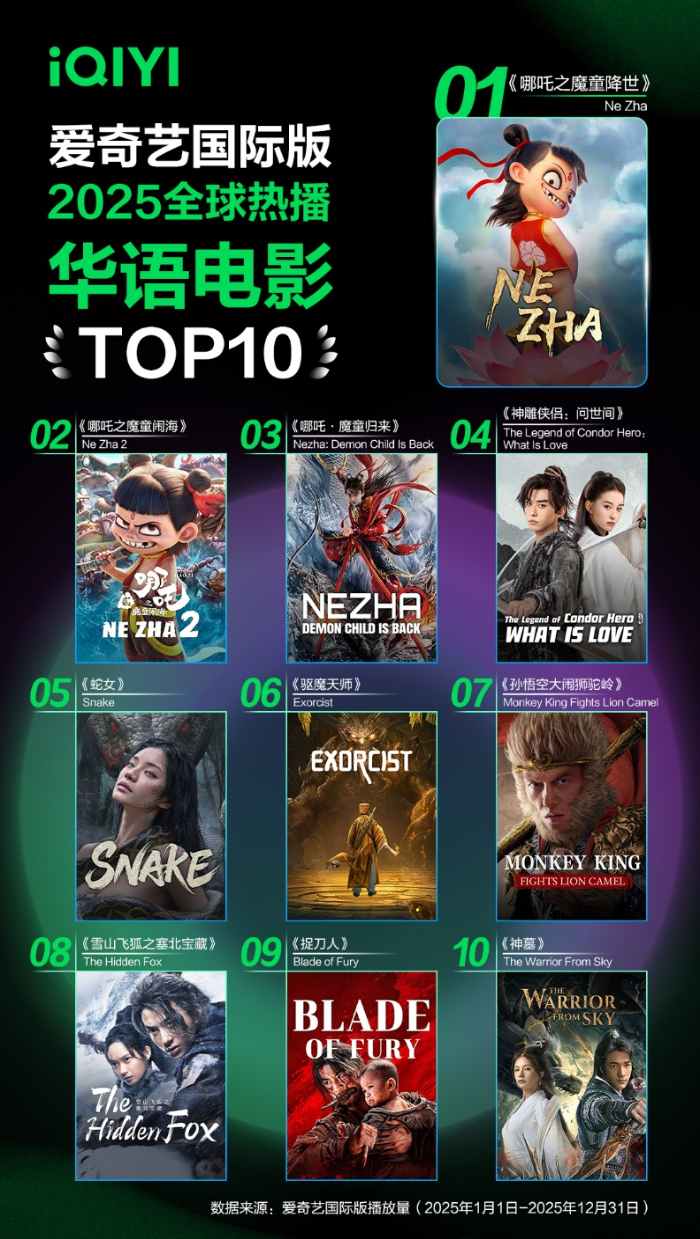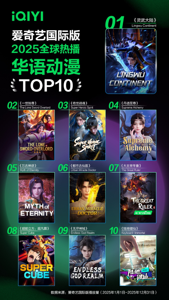 2026年1月20日,《爱奇艺国际版2025全球内容热播榜》正式发布,华语多样化内容正以较高的关注度和流行度席卷全球市场。2025年爱奇艺国际版内容播放量持续强劲增长,同比增长114.5%,华语内容成为驱动这一增长的核心动力。年度榜单显示,融合“中医文化”元素的华语都市爱情剧《爱你》登华语剧集榜首;《灵武大陆》《哪吒之魔童降世》等热血动漫和电影也深受海外用户喜爱;东南亚、北美、东亚、中东北非等地区则呈现出鲜明的观看偏好差异。