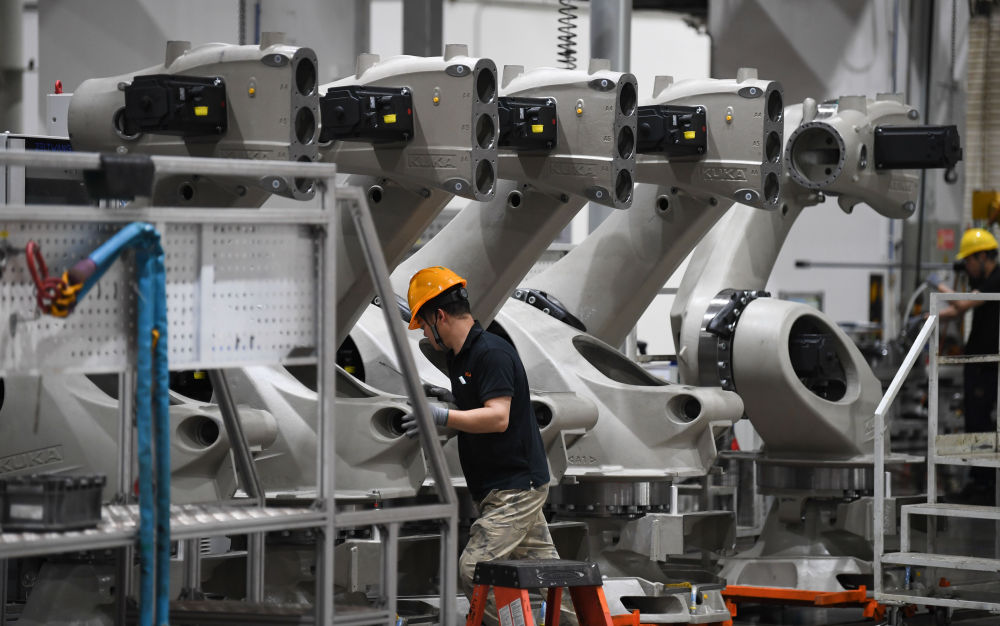 2025年3月25日在广东佛山市美的库卡智能制造科技园拍摄的工业机器人产线车间。新华社记者 邓华 摄