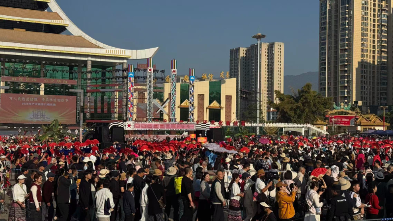 2026年2月20日,2026年芒市新春目瑙纵歌在芒市广场举行。新华网 穆问春 摄