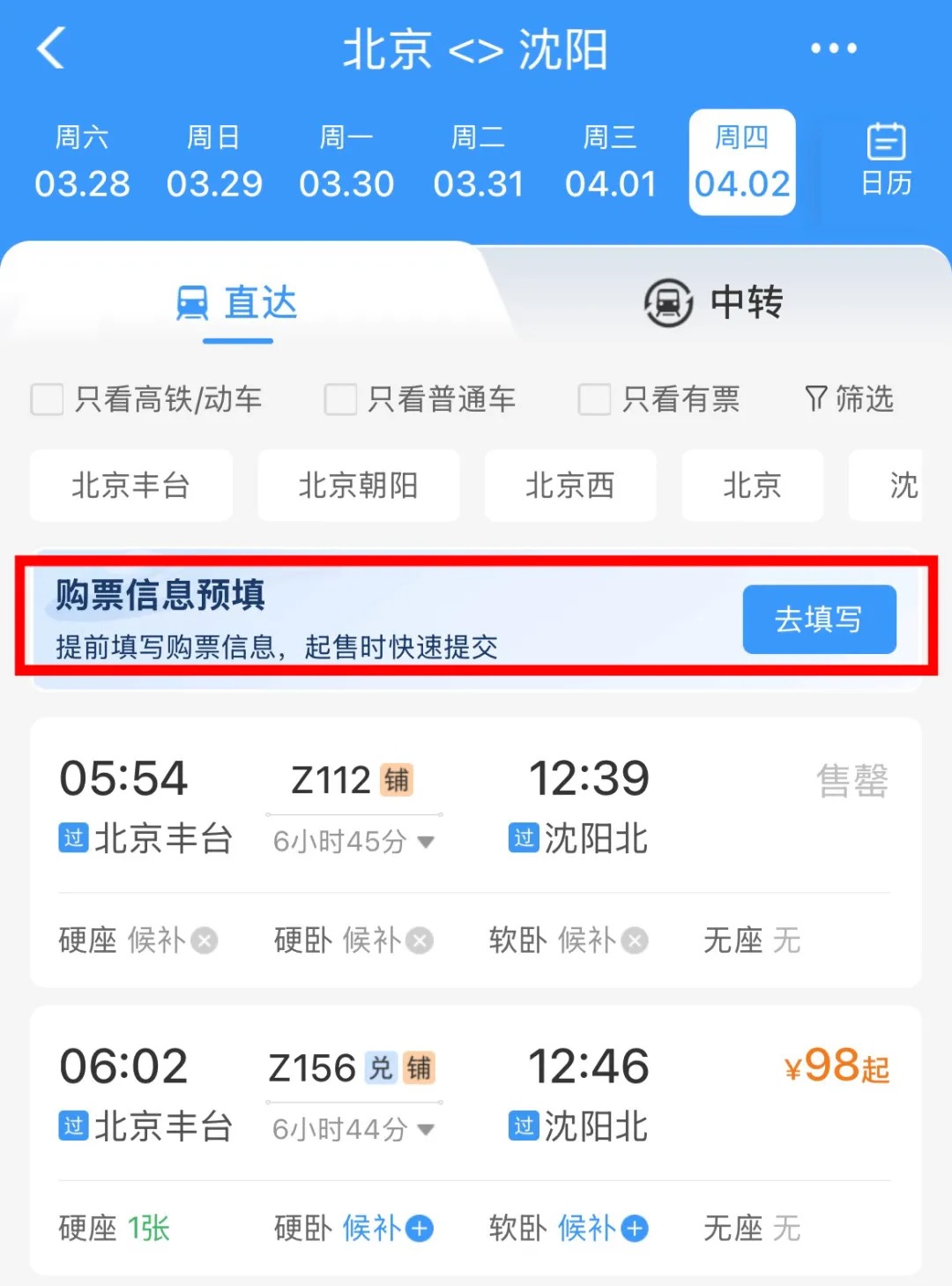 预填信息快速购票