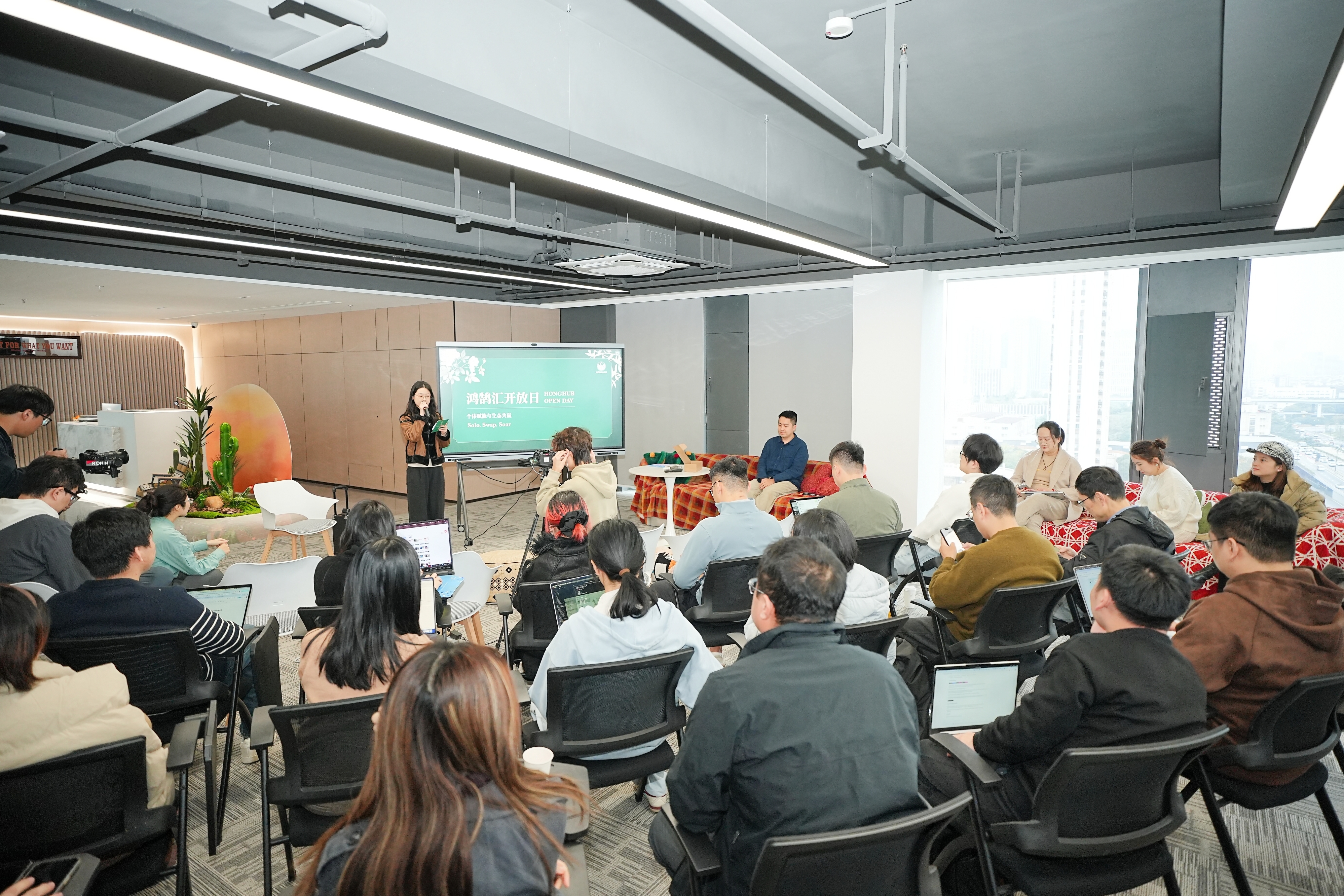 图为杭州市一人独角兽创业社区鸿鹄汇一角。(受访者供图)