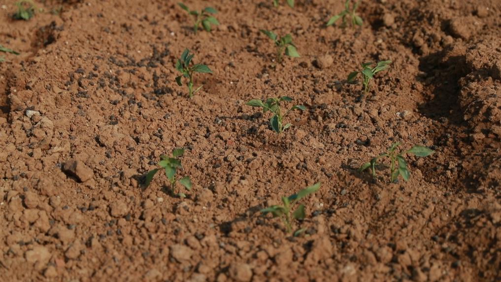 3月12日,济南市历城区的“共享菜园”“章灵丘的田园”中,有菜苗正在生长。新华社记者叶婧 摄