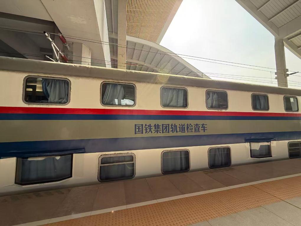 3月27日,在聊城西站,55102次检测列车即将驶出。(梁虹 摄)