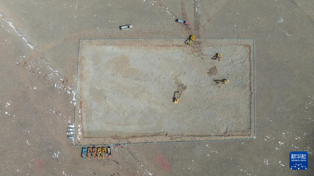这是中广核西藏当雄乌玛塘50兆瓦光热电站破土动工现场(4月6日摄,无人机照片)。4月6日上午,中广核西藏当雄乌玛塘“光热+光伏”一体化项目中的50兆瓦光热电站在拉萨市当雄县乌玛塘乡正式开工建设。据中广核光热技术型号首席专家尹航介绍,该项目场址海拔4550米,是目前全球海拔最高的槽式光热电站。新华社记者 丁增尼达 摄