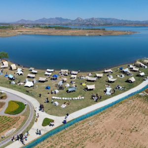 4月4日,游客在山东省滕州市龙阳镇“龙湖月色”省级乡村振兴齐鲁样板片区内露营休闲。新华社记者朱峥 摄
