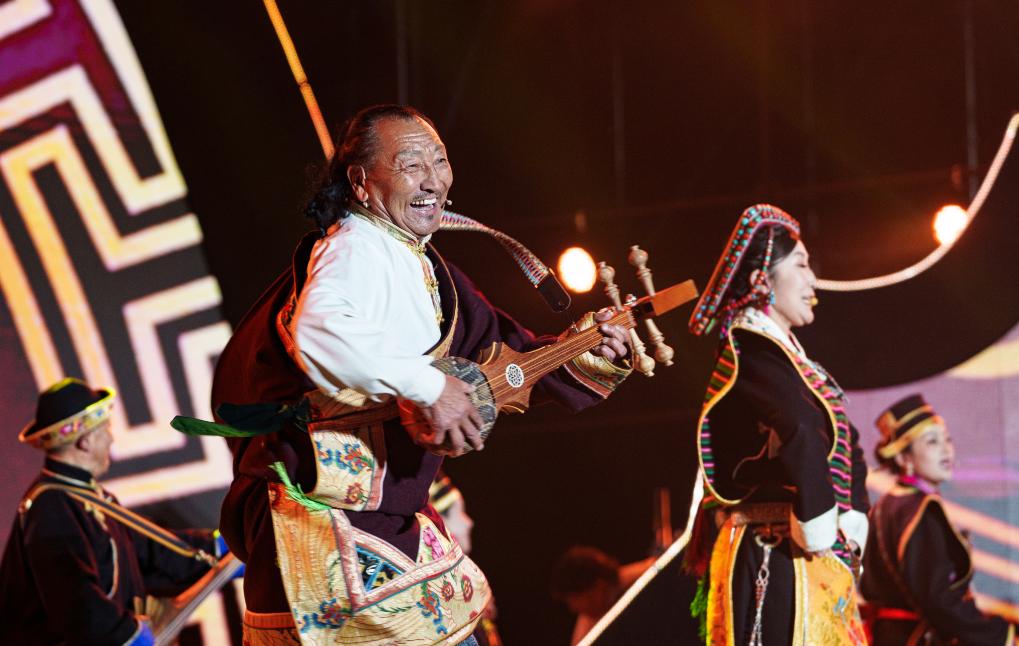 这是2026年4月3日拍摄的林芝第二十三届桃花旅游文化节开幕式文艺演出现场。新华社记者 丁增尼达 摄