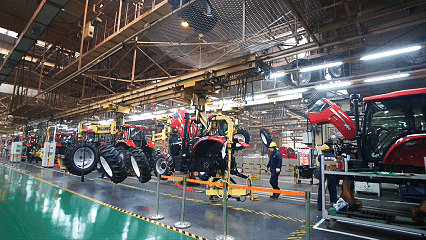 中国一拖大轮拖总装线实现了多种型号、不同马力的混线柔性生产