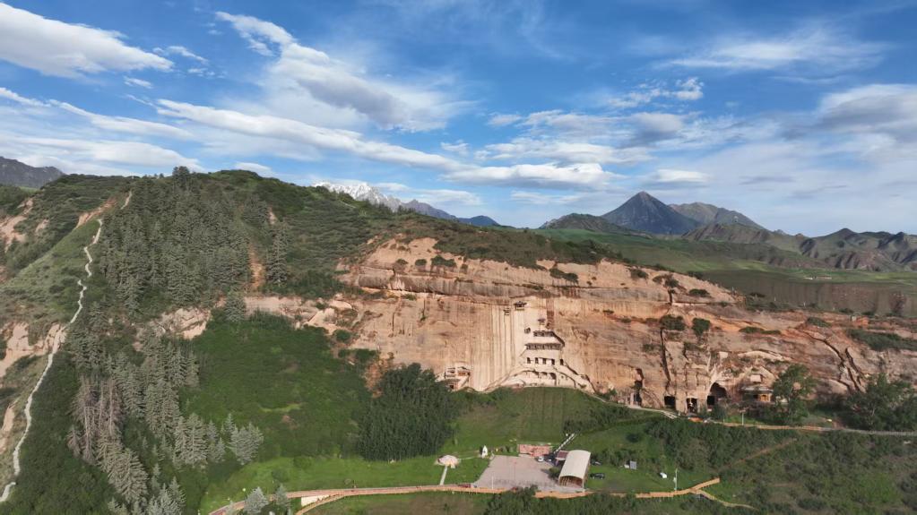 马蹄寺石窟前,讲解员王亚玲手指洞窟和斑驳壁面介绍:“魏晋南北朝时期,大儒郭荷携儒家典籍避居张掖,后弟子承师志,在马蹄寺一带开窟讲学;佛学东渐,石窟扩建,儒佛文化在这里交汇……”