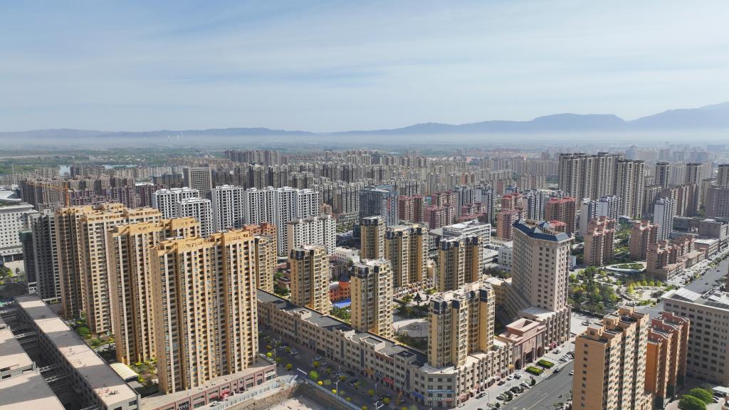 张掖市甘州区滨河新区航拍(4月25日摄,无人机照片)。(郭沛良 摄)