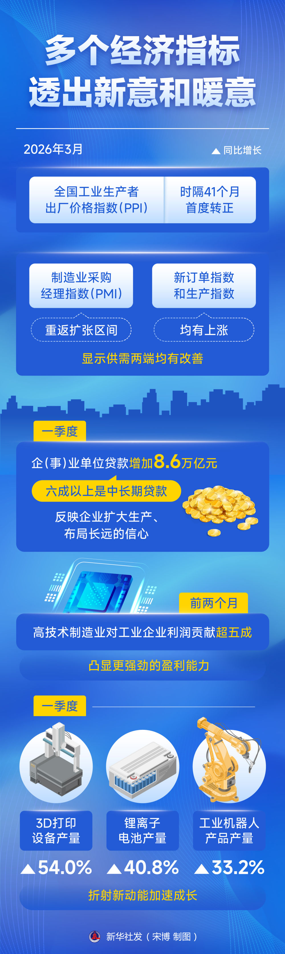 3月,全国工业生产者出厂价格指数(PPI)时隔41个月首度转正,制造业采购经理指数(PMI)重返扩张区间,新订单指数和生产指数均有上涨,显示供需两端均有改善;
