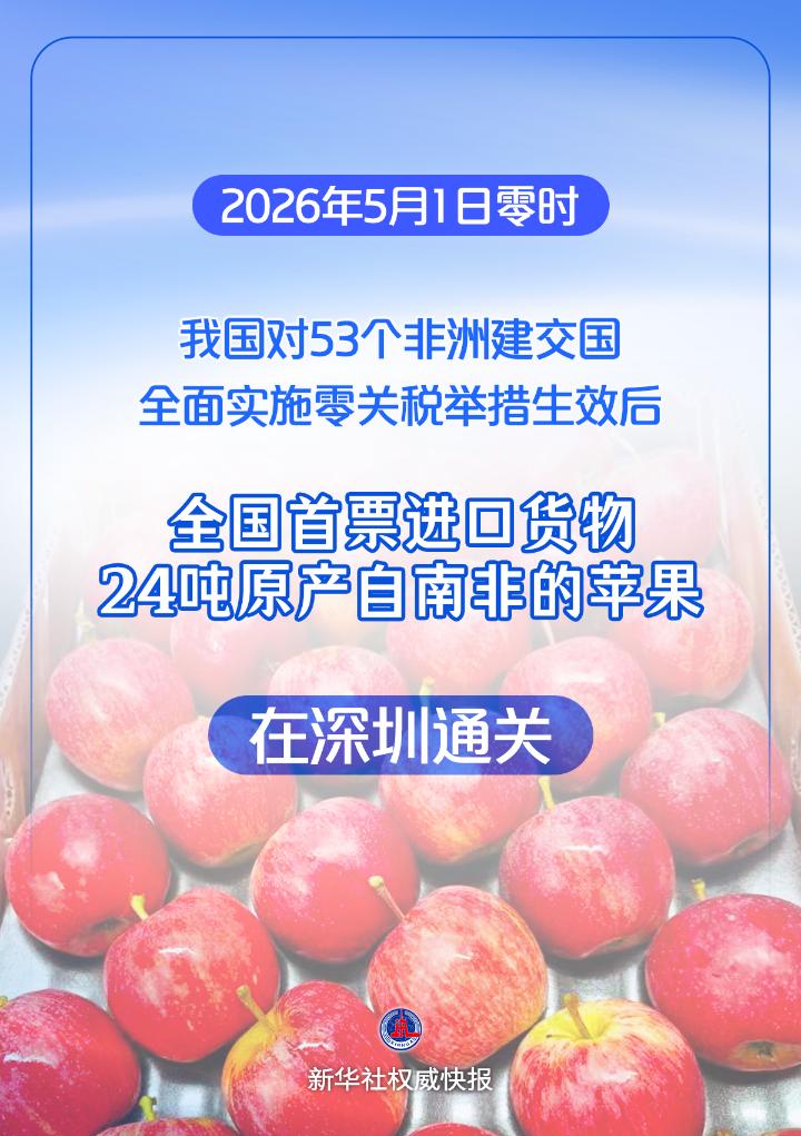 1日零时,深圳湾口岸迎来举措生效后全国首票进口货物。24吨原产自南非的苹果,经深圳海关快速监管验放后,将分销至全国各大商超及果蔬批发市场。本次进口南非苹果关税由10%降至0,商品成本优势显著提升。