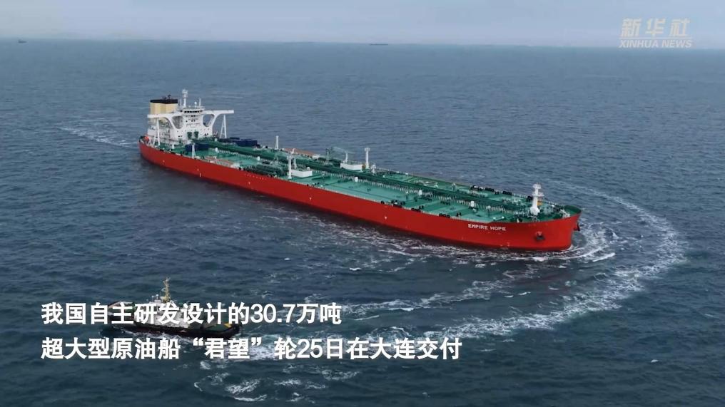 我国造新一代超大型原油船在大连交付