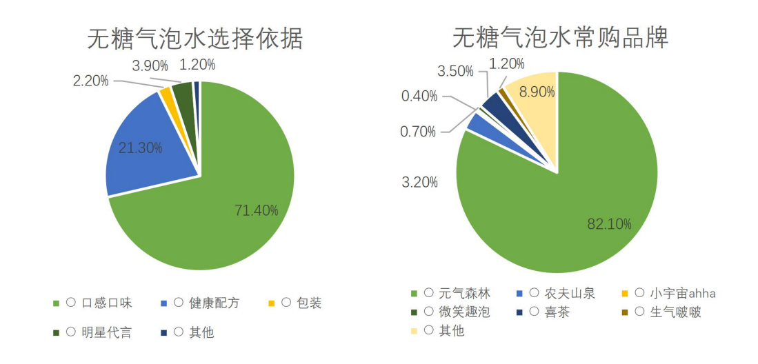 中科院报告针对无糖气泡水这一细分品类,做了大量消费者选择偏好的深度调研。调研显示,最早抢占无糖气泡水市场的元气森林保持着较强劲的品牌优势,在所有的无糖气泡水品牌中,82.1%的消费者倾向选择元气森林,是其他品牌总和的4倍。 在选择偏好方面,71%的用户更在意口感口味,21%的用户在意健康配方。有意思的是,仅3.9%的用户在意明星代言,这一项数据似乎低于此前业内预期。