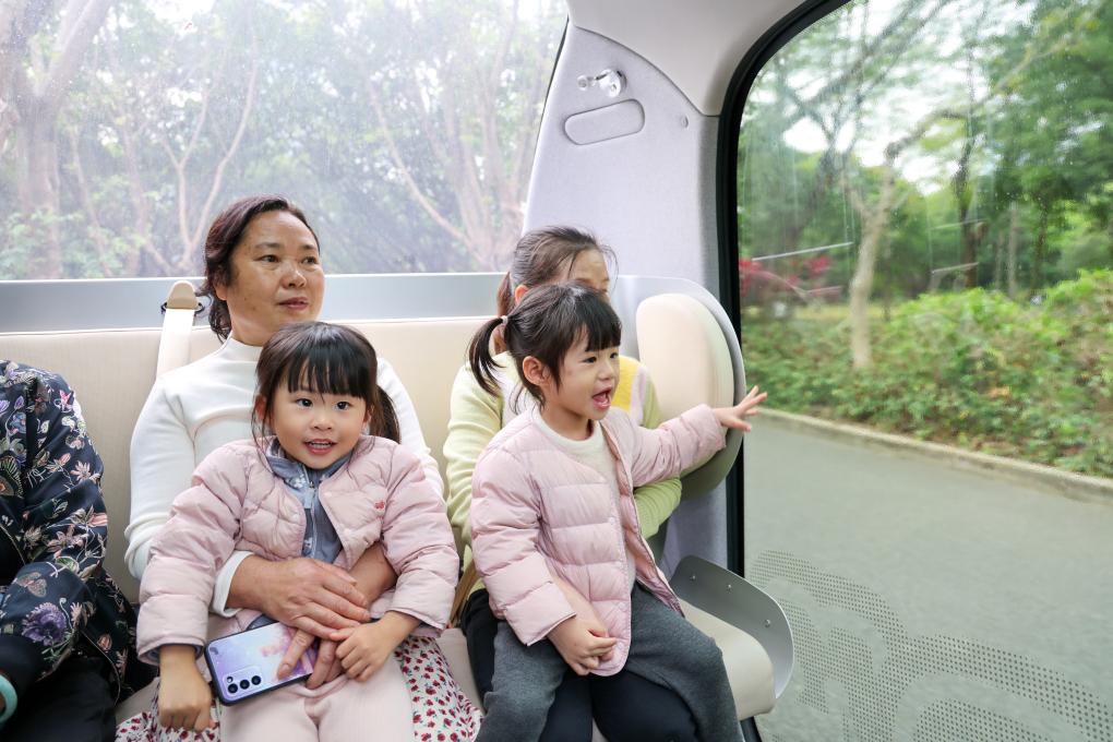 2024年12月27日,人们在深圳莲花山公园里乘坐无人驾驶观光车。新华社记者 梁旭 摄