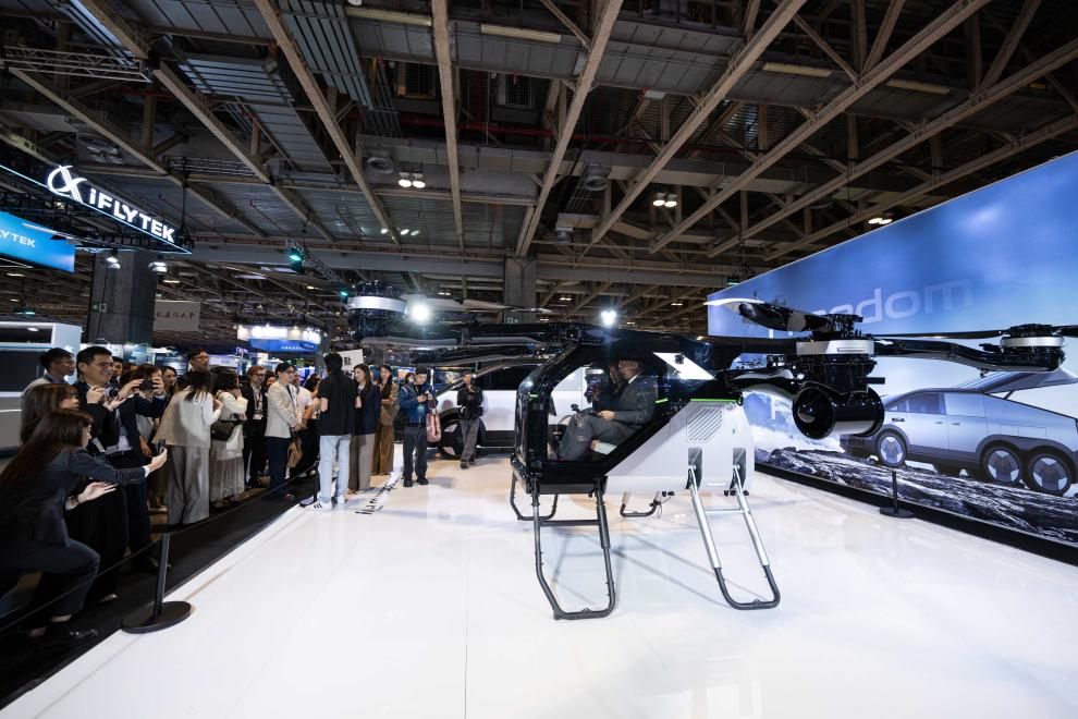 2025年5月22日,与会者在第五届BEYOND国际科技创新博览会小鹏汇天展位上参观。新华社发(张金加摄)