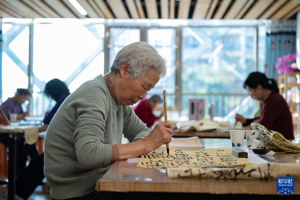 1月13日,人们在澳门街坊会联合总会广东办事处横琴综合服务中心练习书法。新华社发(张金加 摄)