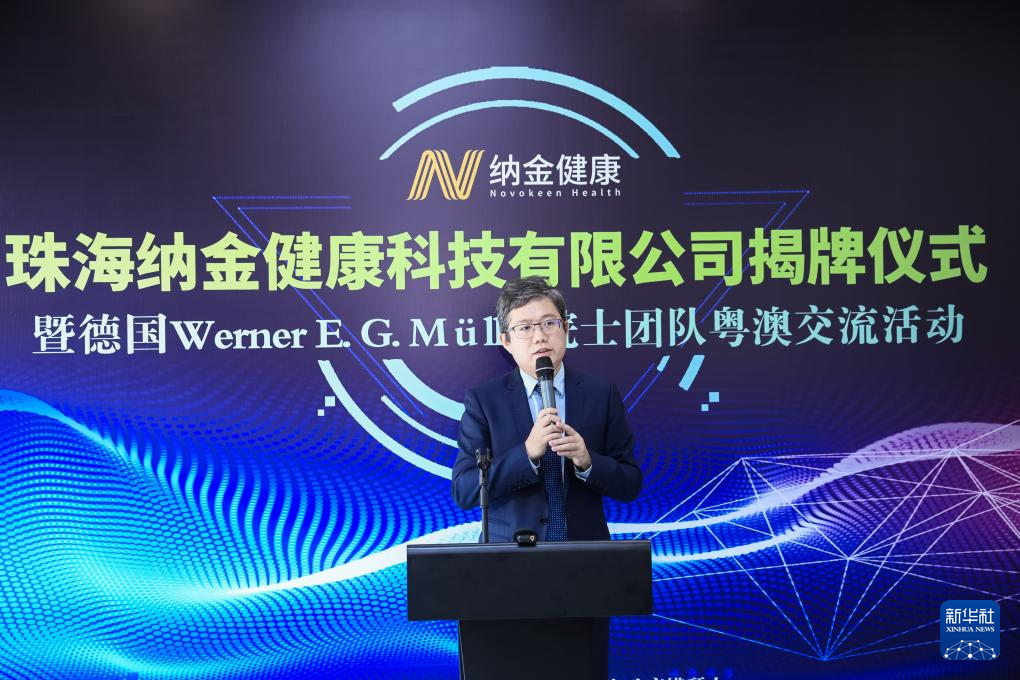 2024年10月21日,雷震在珠海纳金健康科技有限公司揭牌仪式上致辞。新华社发(张金加 摄)