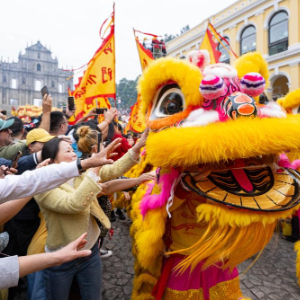 广东中山游客王世杰一早便在大三巴牌坊前等着金龙。“粤澳文化相近相通,都讲粤语、吃粤菜,都喜欢舞龙舞狮。”他说,舞龙醒狮同台献瑞的传统,把节日喜庆氛围“推向更高”。
