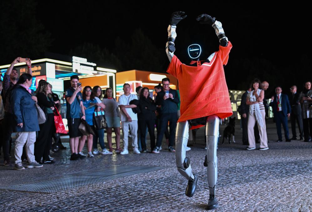 4月21日,市民在西班牙马德里举行的“澳门之夜”活动上观看机器人表演。由澳门特别行政区政府旅游局主办的“澳门之夜”活动4月21日晚在西班牙马德里举行。新华社记者 程敏 摄