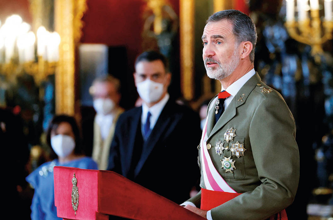 这是2022年1月6日,西班牙国王费利佩六世在马德里王宫发表讲话