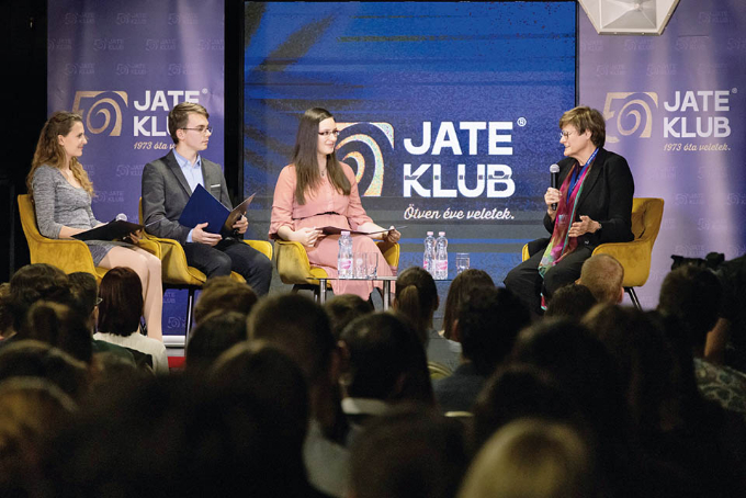 2023年10月12日,2023年诺贝尔生理学或医学奖获得者卡塔琳·考里科(右一)在其母校匈牙利塞格德大学与学生交流