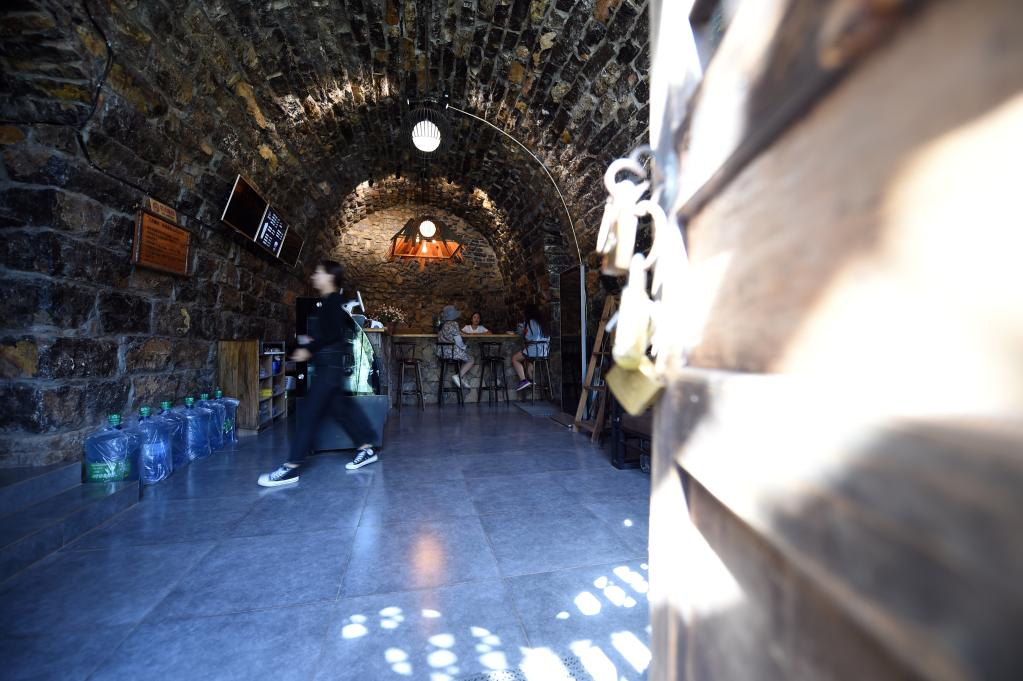 沿青石路拾级而上,以山石打造的明清古民居群依山而建,错落有致,村中仍留存有三滴水院、日月楼、绣楼院等多座完整古建筑。“在这里游玩住宿,可以体会古民居的独特魅力,在石窑结构的咖啡吧,可以读书、品尝糕点、喝咖啡,悠闲地放空自己。”吕海燕说。