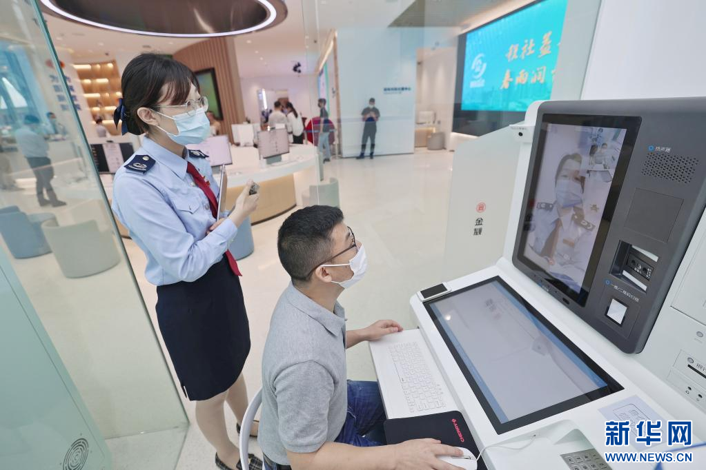 纳税人在深圳市税务部门的智慧办税厅远程连线后台税务人员办理涉税业务。(深圳市税务局供图)