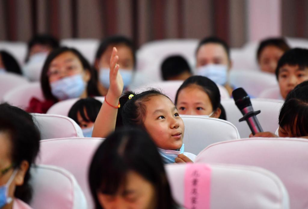 在天津市北辰区青光村党群服务中心,学生在一场安全教育活动上回答问题。新华社记者 李然 摄