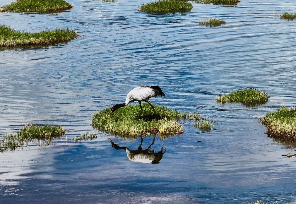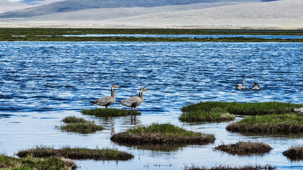 青海省玉树藏族自治州玉树市境内的隆宝滩湿地位于长江源头地区,这里水草丰美,是候鸟迁徙路线上的关键驿站与繁殖地。今年五月监测显示,当地吸引了包括斑头雁、黑颈鹤在内的37种鸟类在此栖息繁衍,斑头雁种群规模达5626只,幼鸟已随亲鸟蹒跚学步;珍稀的黑颈鹤也观测到94只,其中21对正辛勤抱窝,孕育着新的生命。