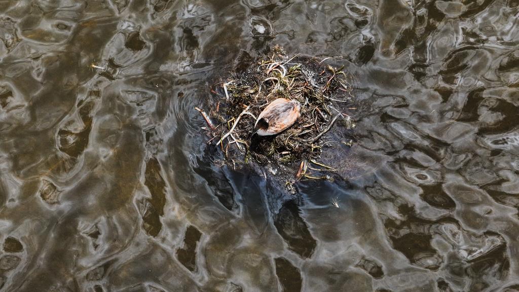 这是6月4日在青海隆宝国家级自然保护区拍摄的筑巢的凤头䴙䴘(无人机照片)。