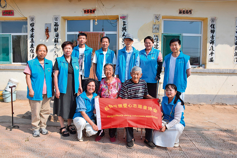 高保云(左前一)带领爱心志愿者协会成员慰问杭锦后旗蒙海镇新渠村困难村民(2025 年 6 月 29 日摄) 谢晓霞摄