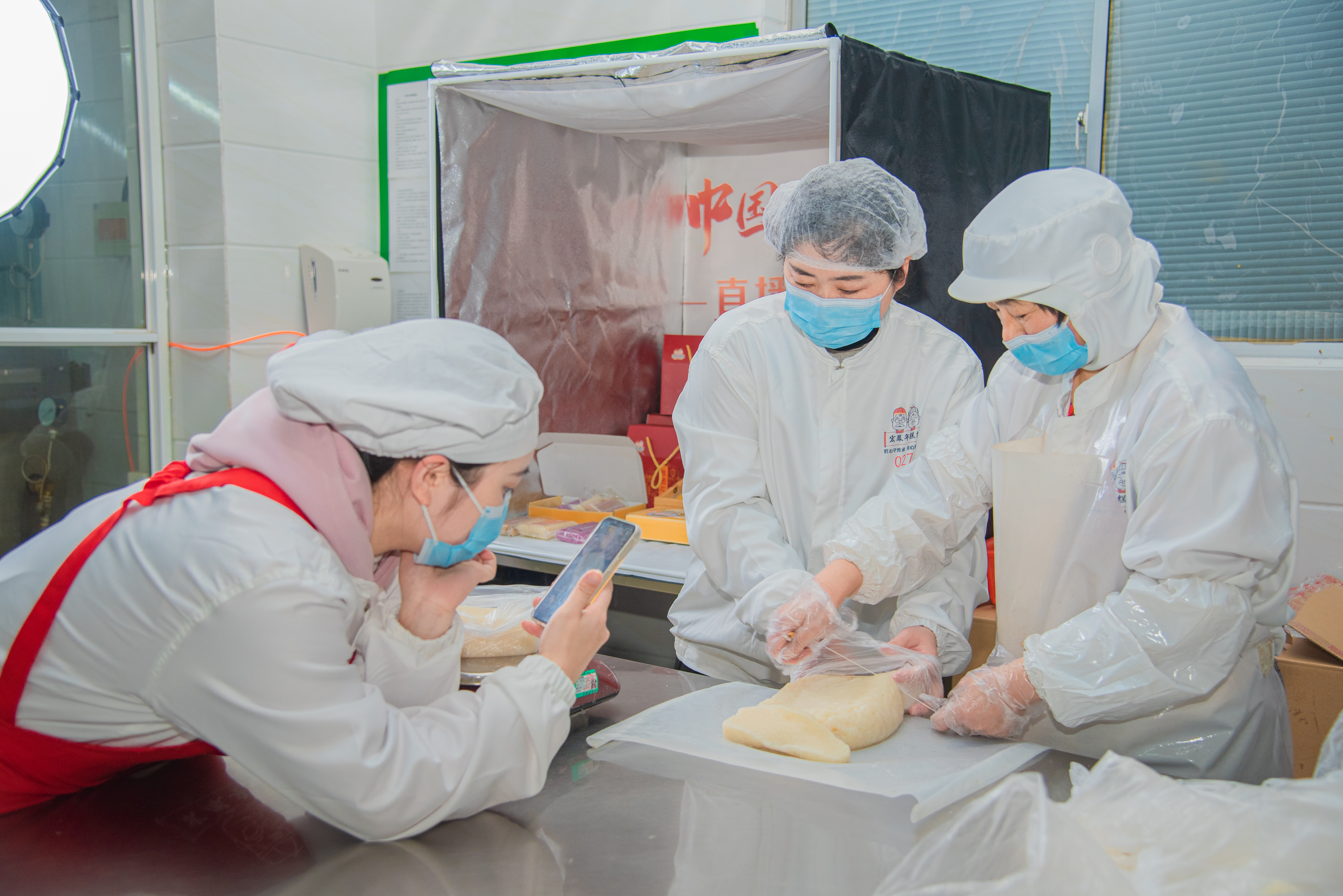 2017年清明,沈静娟在自家灶台前,开启了第一场直播。虽然只有几十个观众,成交额不足百元,但沈静娟却看到了希望:“数字能让全国人都知道我们的脚踏糕!”此后,她带着团队搭建“三微一抖一淘”电商矩阵——在微信朋友圈分享制糕故事,在抖音发布踩糕技艺短视频,在天猫、抖音开设旗舰店,还培养了5名本土主播。