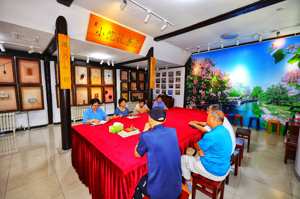 草厂胡同居民与社区负责人在“小院议事厅”议事。(北京市东城区文明办供图)