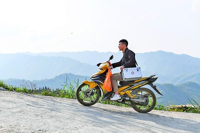 在广西凌云县泗城镇平林村,乡村医生骑行在出诊路上。新华社发