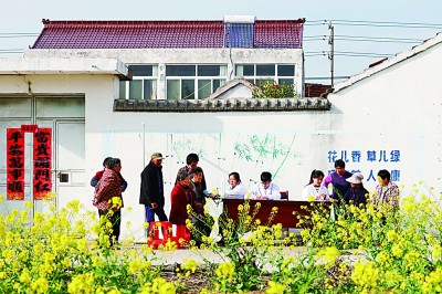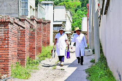 江苏泗洪县的乡村医生在为王沟村村民检查身体。许昌亮摄/光明图片