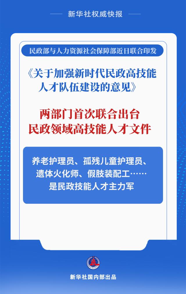 记者4月14日从民政部了解到,民政部与人力资源社会保障部近日印发《关于加强新时代民政高技能人才队伍建设的意见》。这是两部门首次联合出台的民政领域高技能人才文件。