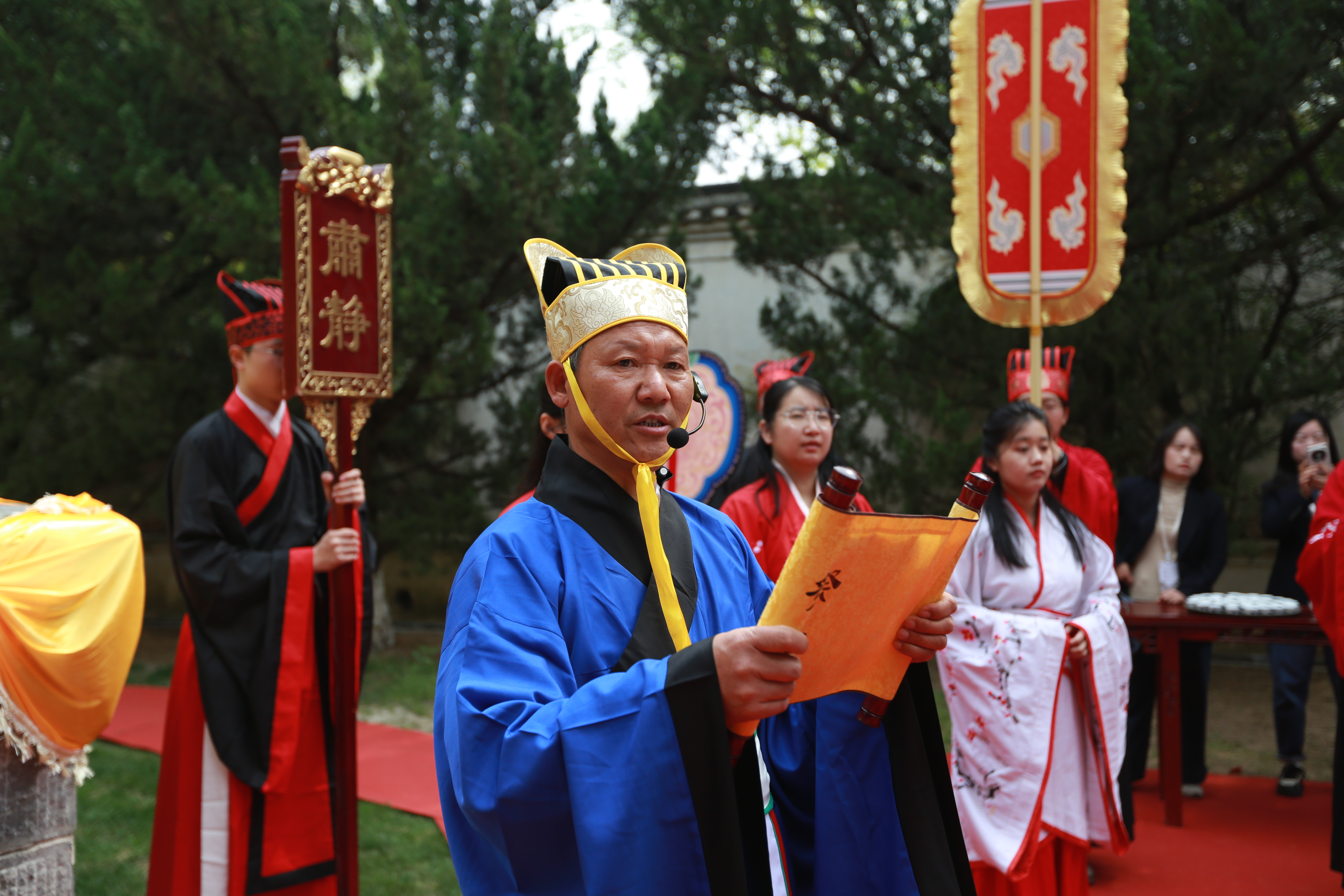 在李白墓前祭拜李白,谷常新多次担纲主祭人。(马鞍山市文明办供图)