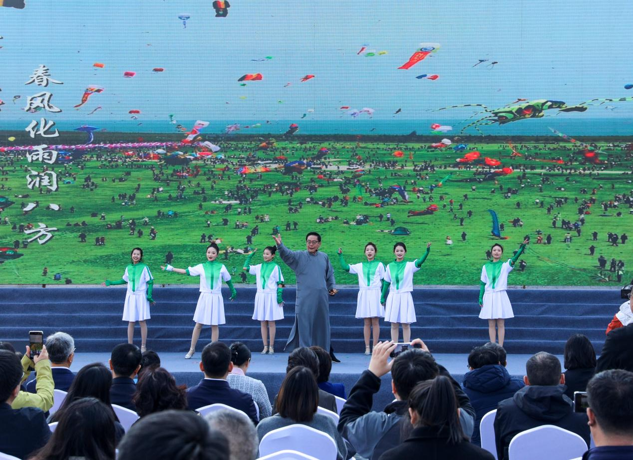 11月14日上午,“文明中国·看山东”典型案例发布会在山东省潍坊市举行。图为歌伴舞《风筝》。新华网记者 周胜武 摄