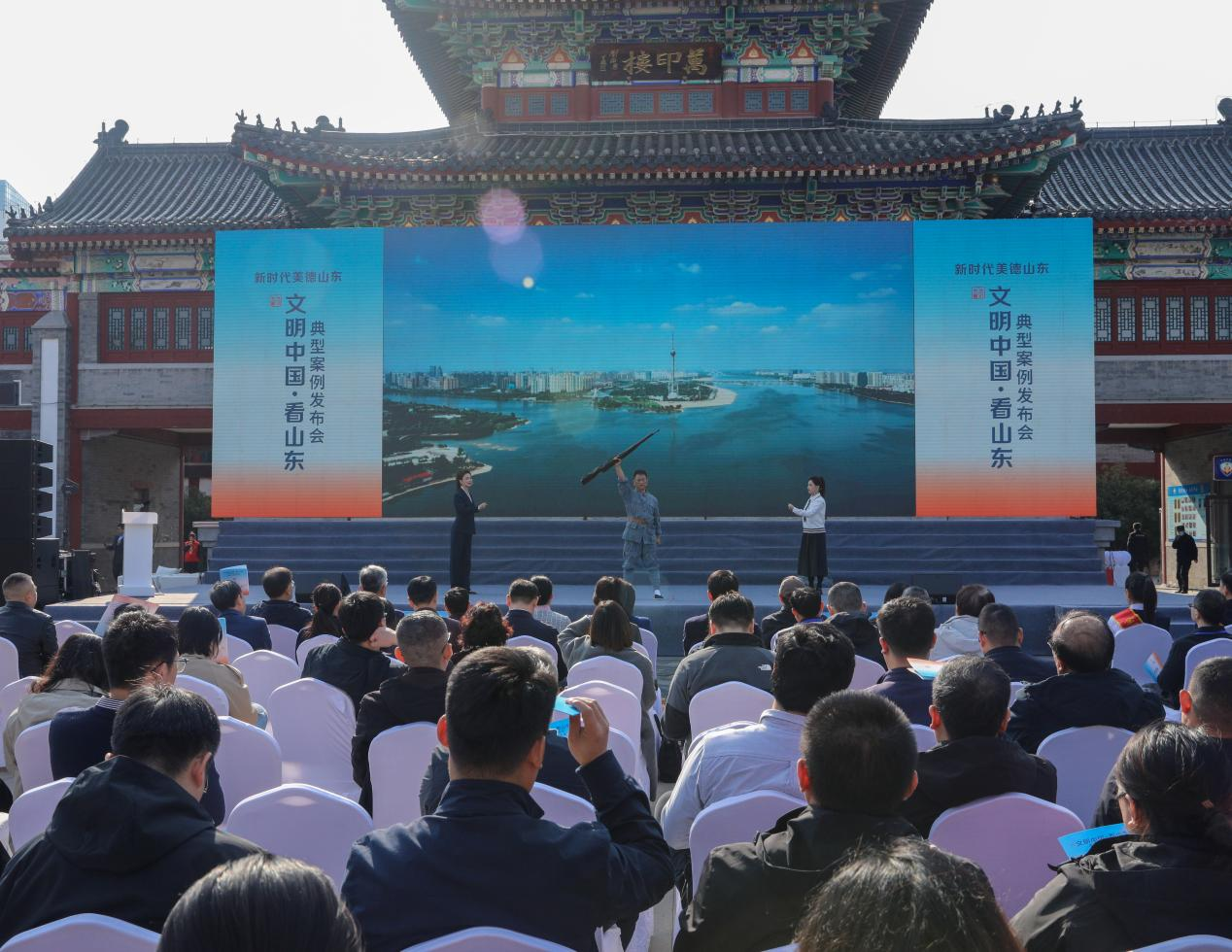 11月14日上午,“文明中国·看山东”典型案例发布会在山东省潍坊市十笏园新时代文明实践街区举行。现场集中发布12个精神文明建设典型案例,包括1个省级案例、5个市级案例、6个区县级案例,全方位、多层次展现山东省精神文明建设的丰硕实践成果。(“文明中国”主题采访报道组:李洪雷 周胜武)