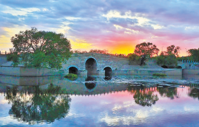 位于朝阳和通州交界处的古桥——八里桥,在落日余晖中更显秀丽。记者 白继开摄