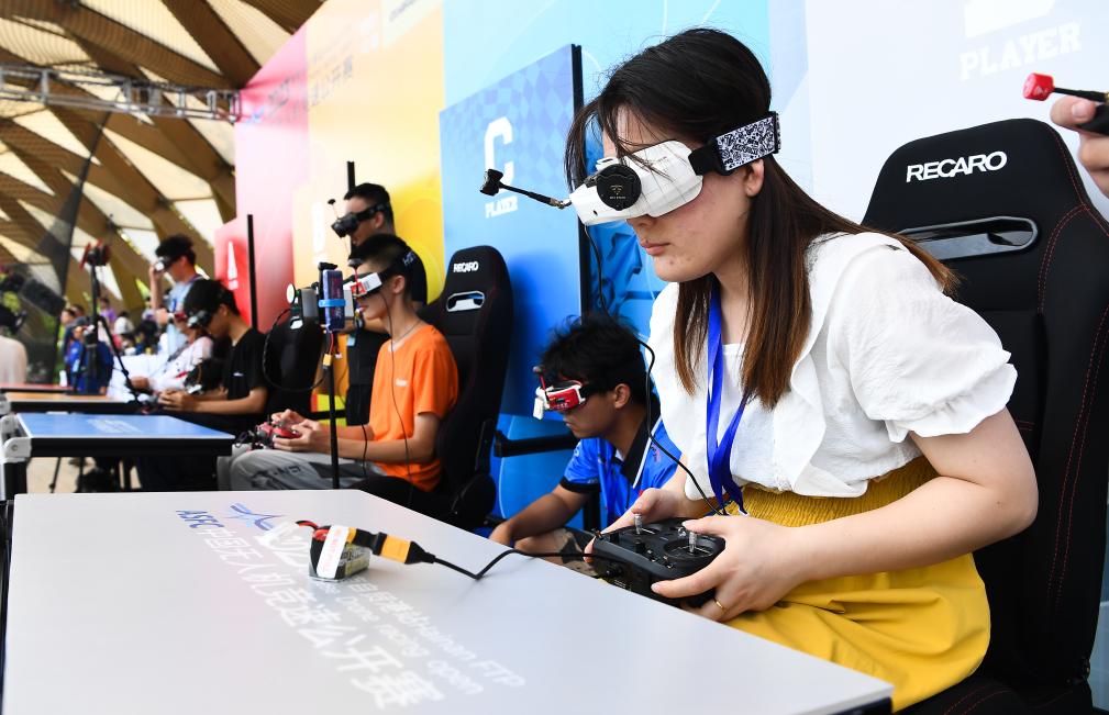 7月13日,参赛选手操作的无人机在试飞轮的比赛中。新华社记者 杨冠宇 摄