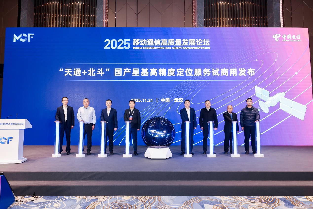 11月21日,2025移动通信高质量发展论坛在湖北武汉开幕。作为本届论坛的重要组成部分,空天地一体卫星互联网创新应用实践分论坛于同期成功举办。会议期间,中国电信正式发布“天通+北斗”国产星基高精度定位服务试商用,旨在助力北斗规模化应用,支撑我国综合PNT体系自主化建设。